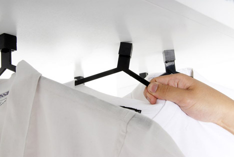 这个衣架用磁铁代替了挂钩,由