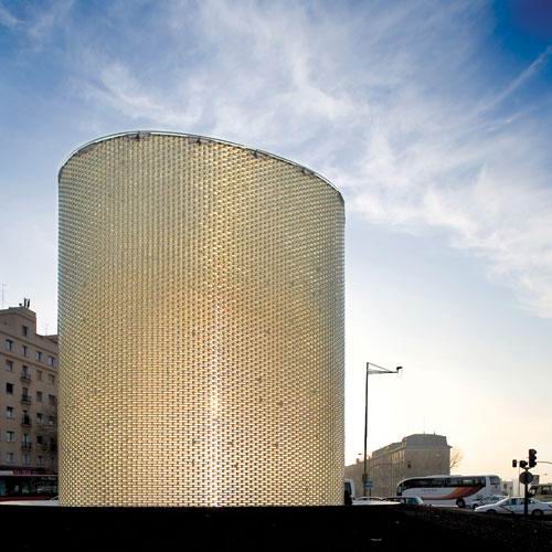这个纪念堂是为了纪念3年前(2004年3月11号)西班牙马德里火车站大爆炸中的罹难者,由FAM architecture studio设计。上图看到的是纪念堂的内部,高于头顶的薄膜圆筒上印着人们在大爆炸发生在车站后所留下的纪念死者的信息,这种薄膜是ETFE,也就是Herzog & de Meuron设计的Allianz Arena,OMA的Serpentine Gallery, 以及PTW设计的水立方的那种材料(前不久连线杂志有一文章介绍水立方)。