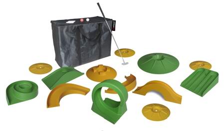 MyMinigolf,一个9洞迷你高尔夫套装,包含13个塑料道具,一根球杆,2个球,一个记分牌以及一个硬纸箱,无论是身在何处都可以玩上几把。售价€149,由Georg Pal和Hannes Weber设计。