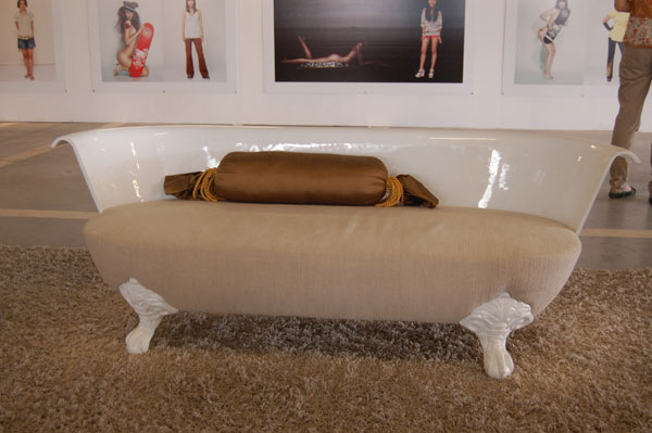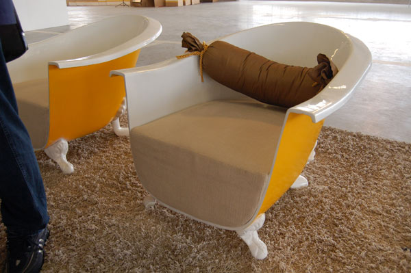 补充(9/16):下面是 colourphilosophy 在大声展上拍的浴缸沙发照片,作者是建筑师胡倩与高桥邦明,同任职于矶崎新上海设计事务所。谢谢 colourphilosophy!