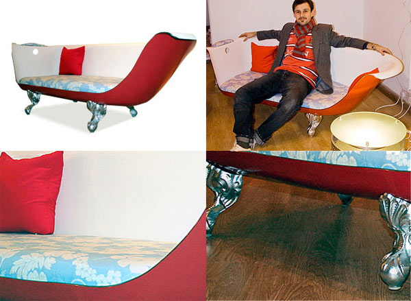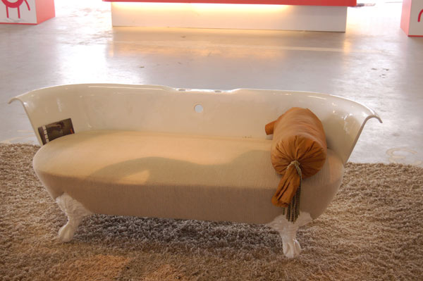 Max 来自Reestore(致力于re,回收设计的公司),将老式的铸铁浴缸做成的沙发。它也是 [re]design 组织参加 London 2007(伦敦设计节)的作品之一,我们前文介绍过[re]design 05年的作品,其中也有将浴缸做成椅子的,(另外还有一个Reddish Studio 的bath chair),今年 [re]design 参展 London 2007 是16条绿色设计的椅子(坐具),在core77上可以预先看到一些图片。