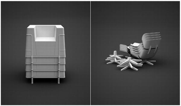 STACKING HOMMAGE 是一系列可叠加的椅子,这三条椅子形式语言来源于经典,比如上图的 Barcelona 椅,下图的Corbusiers LC2 和 Eames Lounge Chair,低价,可叠加。来自DIRK WINKEL的设计。
