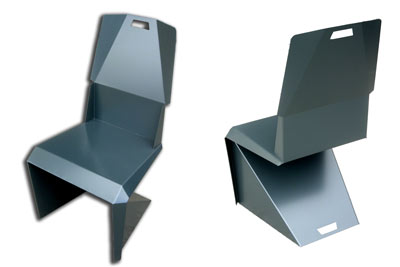 Phantom 椅子是用单片金属折弯而成,制造容易,适合折叠,廉价这些都比它的创意来源–Verner Panton 的 Panton Chair (潘顿椅)更具优势。