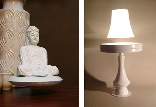 Crealev 是来自荷兰 Eindhoven(艾恩德霍芬)的一家致力于悬浮技术的公司,在荷兰设计周上他们展出了悬浮灯,我们前面也介绍过一个悬浮灯泡,那么 Crealev 的悬浮技术又有什么特别的呢,悬浮的技术有很多,如果是全悬浮,那么必须保证悬浮体全方位(3坐标3角度)都保持静止,即当外力作用,比如去拉或者推的时候,反作用力会驱使其复位。Crealev 的专利悬浮技术特点就是低能耗,能把物体举很高,以及很好的稳定性。它的基本模块和下图类似,飞碟形状,没有C形状的基座,所以悬浮物体的上方是空的,可以为设计带来很大的自由度,底座非常薄,也同样给设计带来空间,比如隐藏到桌子里,这个模块系统可大可小,满足不同需求,小的只需要电池支持即可。详细可以见 Crealev 网站,里面有一个视频。