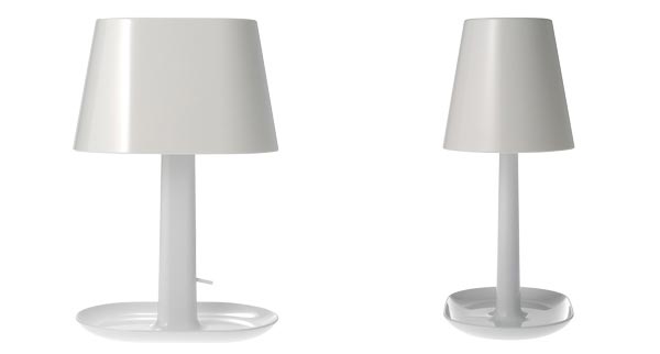 这个是在台灯的下面有一个盘,大家一回家的话,就会把手表、钥匙取下来,有一个放东西的地方。这里面有一个开关,大家把东西往里面放的时候,就把开关打开了。这个就把你专门开关灯和你一回家、或者出门就自然的把灯开/关了。是两种状态的切换。