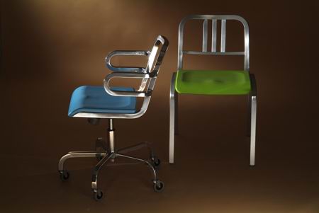 我们称之为经典的一类设计,就是它到处可见,这个 Emeco Navy 对于我们来说,看到的机会多在电视电影杂志上。 Emeco Navy 诞生于1944年,如名字所含的意义,它是二战中美国海军的用品(军舰),美国海军要求 Emeco 的创办人也是 Emeco Navy 的设计者 Witton C. “Bud” Dinges 生产一条适合特殊环境的椅子,即经得住鱼雷在一旁的爆炸,Witton C. “Bud” Dinges 和 Alcoa 专家合作带来的 Navy 铝制椅子远超出想象,从6楼掉下,只有一些擦伤。寿命为150年,可伴随一生。