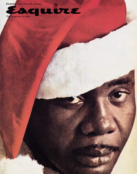 1963年圣诞节的 Esquire 封面,杂志原本以为 George Lois 也该妥协一下了,毕竟是圣诞节,但是 George Lois 是疯子。他前无所有的搞了一个黑脸圣诞公,这位“死相”的黑脸圣诞老人是 Sonny Liston,是世界杯重量级拳击赛的冠军,是罢工硬汉,被媒体渲染成最坏的家伙,当时因持枪窃盗在狱中服刑,当时美国处在黑色革命浪潮中,当人们一家温馨的围在壁炉边,翻开这本杂志,看到这个“最不想看到那个从烟囱华夏的家伙”,会是怎样?但有艺术史教授写信称赞这是继毕加索格尔尼卡之后,最伟大的传达社会声音的造型。同时也让 Esquire 损失了75万美元的广告。