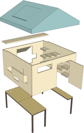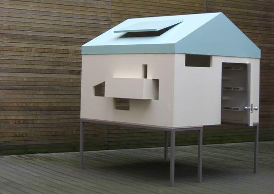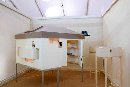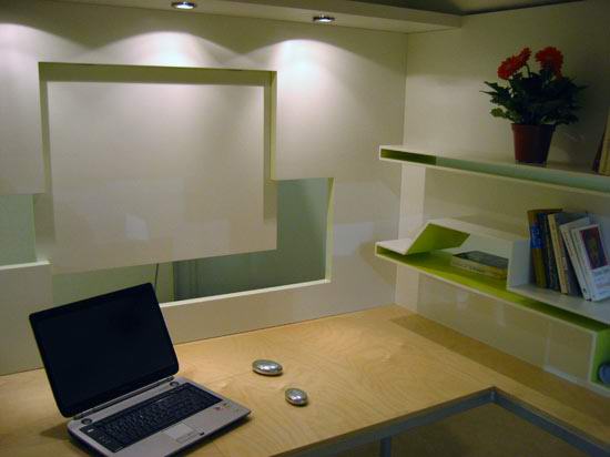 上面这个桌上房子(House on the table),说它是一个桌子,但它有自己的屋顶;说它是一个房子,它更像是个帽子。这个House on the table 设计来自韩国的 soojin hyun,是一个个人工作台,设计者从我们小时候的梦想出发,那时候我们都想要自己的一个房间或房子,我们在玩具房中摆布自己的空间,畅想着自己的未来。随着我们长大,一切也发生变化,像一个成年人“理所应当”的那样工作,偶尔回忆一下儿时的美梦。House on the table 由一张桌子,四面围墙以及一个屋顶组成,墙上有书架,有窗口,有抽屉,也有门,给你一个愉快舒适的工作环境,而且整个公司看上去会更像一个村落或一个城镇。