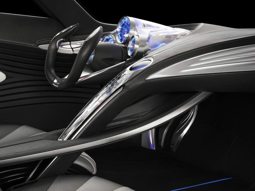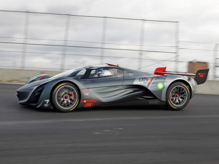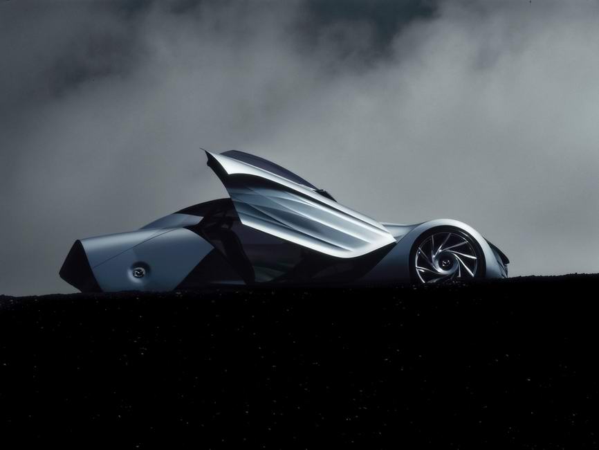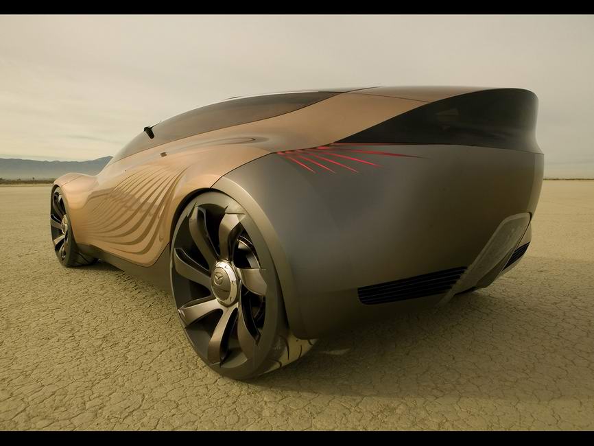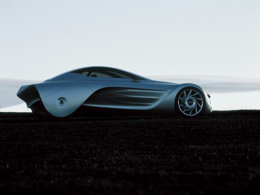 Mazda Furai Concept 来自马自达北美( Mazda North American Operations),Franz von Holzhausen 设计总监,马自达推出这辆赛车概念车在2008北美车展上展出,为他们参与赛车运动40周年而庆祝,因为是一辆赛车,Nagare 的设计语言——流线型在这辆车上设计满足更多空气动力学的需要,头部进气栅将空气导入车体,为引擎降温,车身侧面的流线设计将空气带入后轮制动以及油箱和离合器的降温部分。