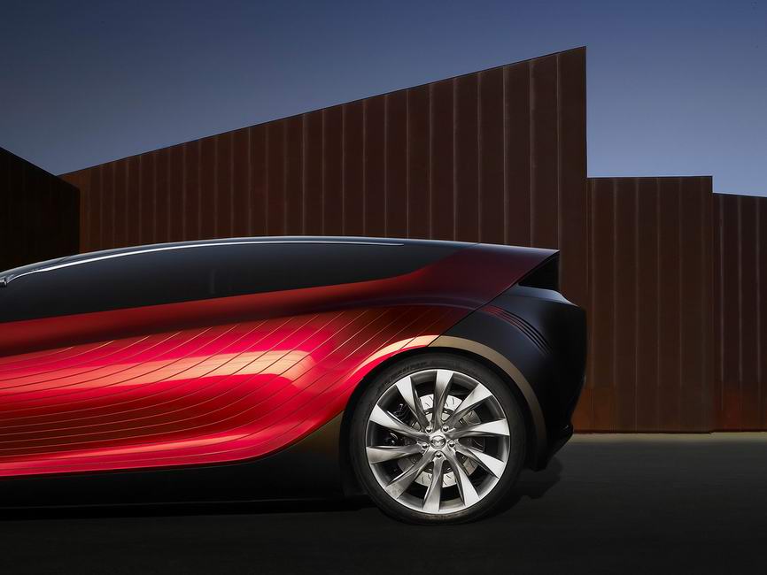 Mazda Nagare Concept 来自马自达 Irvine 团队,Laurens van den Acker 主持设计,被称为是概念中的概念。Mazda Nagare Concept 设计一些元素源自Mazda Senku Concept 和 Mazda Kabura Concept。他们从一些自然形态中来寻找设计,比如风吹沙丘,水入流,熔岩下山等。Flow 从此开始。