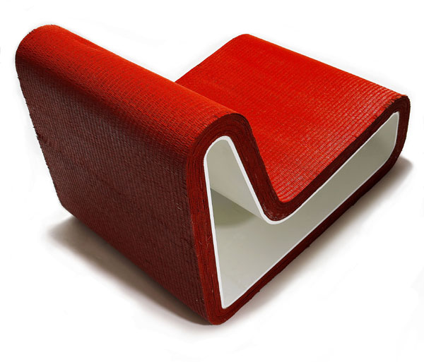 荣获2006年深圳国际家具邀请展创意大奖,本设计取材于东方传统的材料-草席。令人惊喜的是,属于传统工艺品、透气而清凉的草席被唯美地赋予了功能和三维形态。被染红的光滑席子,层层叠叠地包裹在线条干净的白色椅子之上。椅子侧面犹如被切割的截面,恰好展现细密、有规律的材料美。