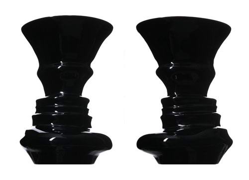 这样的设计也不少见,除了我们说的视错觉的例子,还有其他设计师的一些设计,比如下面有一个 Karim Rashid 早先设计的 ego vase 采用是相反的一个形。而这个 FAT 的 Heroes of The Invisible 花瓶除了两个头像选择的特殊之外,外观也区别于一般的严格的回转形状(因为是两个头像),这样从不同的角度就可以得到不同的头像(下面有视频),如果说多个角度的曲线都是精细考虑的,我们就可以感受到过程中的一些数理特征,如果你觉得这些没什么,那么它至少给我们一个启发,就是有些细微之处是可以深入探索的,比如也许你来做这样的设计,可能就停留于严格的回转形。