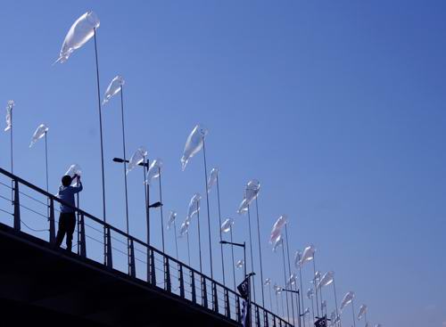 Fish in the Sky (天空中的鱼)来自 Nothing Design Group 的一个作品,和前文的25万欧元铺大街一样都是由 droog 组织的 Droog Event 2: Urban Play 正参展 ExperimentaDesign Amsterdam 2008。Urban Play 由 Scott Burnham 策划,Urban Play 将设计带到街头,给人们工具并让大家朋友家人等一起参与,启发公众的创造力,因为街头的创新、能量和创意是未来城市的创造性所在。