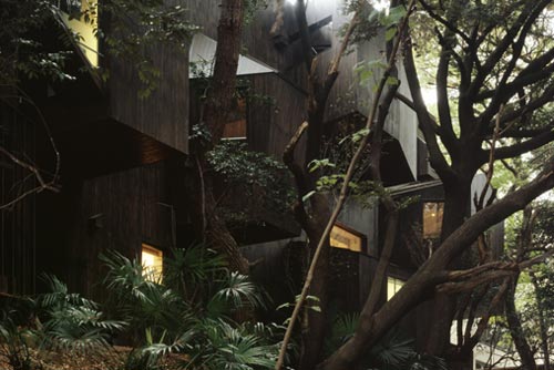 Dancing trees,Singing birds(林舞鸟鸣)是由日本 Hiroshi Nakamura(中村拓志)设计的一套住宅,这套住宅并非像它名字的潜在含义那样位于郊外,而就在东京市内,只不过它的周围都种植上了树木,房子一面拉升而出的窗台与树木错落有致的相呼应,而房子也裹上一层树木的外表,似乎有点田原气息,而内饰则是简洁的现代设计。(更新:这个设计是 Good Design Award 2008 BEST15 获奖者之一)