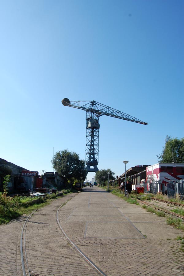 在阿姆斯特丹的北部,以前的 NDSM 港口——一个工业港口,上世界80年代那里的造船工业倒闭,但建筑设施都保留下来,现在成为艺术家设计师的一个聚集地。Eikongraphia 上有介绍。