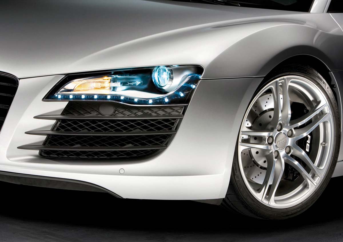 LED 在车灯上的应用现在已经是很常见了,但那个车留给你印象最深,应该就是 Audi 车系了,特征鲜明的 LED 车灯已经是 Audi 车的一个识别符号。5年前的北美车展上,Audi 的 Pikes Peak quattro 概念车也就是Q7前身在雾灯上首次使用了高效 LED,在2006年底,在R8的车前灯全部使用了LED,之后 LED 运用到各个车型。LED 技术的发展和计算机芯片一样有着很快的速度,比如效率从 Pikes Peak quattro 概念车时候的每瓦18流明,明年将达100流明,而家用灯泡是每瓦20-25流明,氙气灯是每瓦80流明,到2018年LED效率将会是卤素灯的8倍,使用在车上节省能耗就是降低耗油量。而LED的小体积、使用寿命和控制的敏捷让其更有广阔的用武之地,为各种设计实现带来了便利,它们可以组成不同的形状,为汽车带来生气,传达不同车的不同性格,下面是不同 Audi 车型的LED 灯,关于 Audi LED 车灯设计可参考这篇文章。
