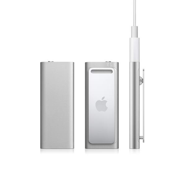 Apple 在昨天发布了新款 iPod Shuffle,世界上最小的 iPod,尺寸为45.2×17.5×7.8mm,重为10.7 克。新款的 iPod Shuffle 使用了线控耳机,将控制键从机身移到了右耳塞的下方,在机身顶端有一个开关/随机/顺序播放的按钮,背面的小夹子使用了不锈钢,银、黑两色的阳极电镀铝合金外壳,容量为4G。iPod Shuffle 引入了 VoiceOver 技术,当听一首歌曲,想知道歌曲名称或者是表演者名字,只要按一下按键,VoiceOver 便会用为你读出来。更详细介绍可见中文官方网站。