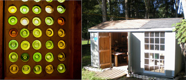 “I think it’s in everyone’s DNA to want to be a builder.”成为一名建造者这个想法在每一个人的DNA中,这句话来自于64岁的 Dan Phillips,Dan Phillips 12年来用“垃圾”来为低收入家庭建造房子,到现在建造了14个,上左就是他用酒瓶底做的一扇门,他建造的房子可以见这,这组照片或许也能激起埋在DNA里的冲动。正好 daidesign 刚完成了自己的木工房(右图),对于设计师来说,或许最想拥有的是一个自己的工作室或者车间。