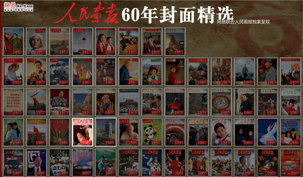 网易和《人民画报》合作推出的一个栏目——人民画报60年封面精选,而点击每一张当年精选的图片进入可以查看当年的所有封面,从1950年7月的创刊号开始一直到现在的封面图片。当将年代拉长,它就成为历史的视觉记录以及视觉的历史记录,无论这个记录在当时的动机是怎样。