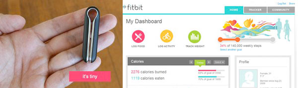 Techcrunch 追踪介绍了 Fitbit 这个项目, Fitbit 是一个小型的步程器也是一个个人健康监视的微小产品,售价99美元,只要佩戴在身可以读取运动的一些数据比如走了多少路睡眠怎样烧了多少卡路里等,数据可无线同步到电脑和网站上(基座),作分析管理。