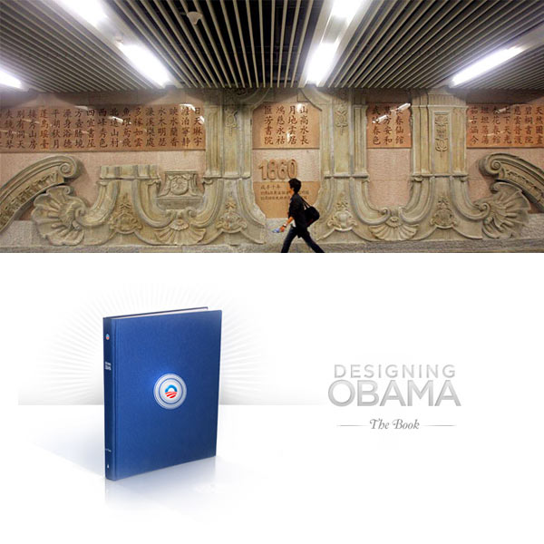 我们将两条新闻放在一起,一条是北京地铁4号线28日开通,我们可以从这些图片中看到一些“丰富的设计”,另外一条是 Obama 竞选团队的设计总监 Scott Thomas 出了一本书叫做 《Designing Obama》(设计奥巴马),Obama 竞选被称为是美国政治上首次—竞选人使用艺术和设计把美国人民带到一起,用视觉语言表达他们的声音。