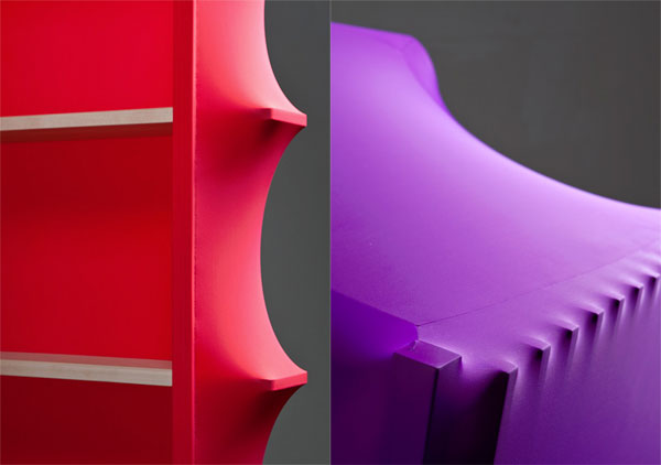 Studio Wai & Lanzavecchia 做的一组 Spaziale 系列家具,在木质的家具骨架上蒙上一层弹性的布料外皮,这种张紧感很能吸引人,更多的图片见这。