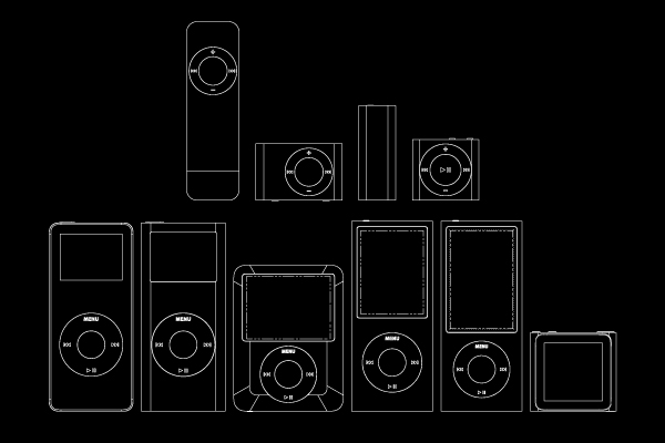 Apple 是如此一成不变吗?Apple 最近一次产品更新是针对 iPod,那么我们来回顾一下这个产品的发展历程,上图所示的是 iPod shuffle 和 iPod nano,不仅不是一成不变,而是变化无端,更不一般的是,它还是来回变换,老吃回头草,新一代否定上一代回到上上一代,从而否定上一次的否定,这在很多人看来是大忌。更让人吃惊的时,每一次更新,Steve Jobs 都会“恬不知耻”地把这种变化描述的这么自然,“嗨,我们发现消费者更喜欢……”