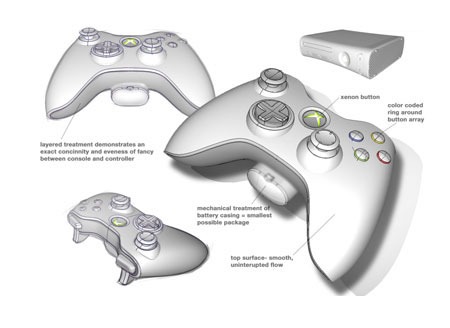 上图展示的是Xbox 360的设计过程方案.在外观上Xbox和第一代有了明显的改变,更加趋向于消费者,更加充满活力.Gamasutra采访了Xbox 360的设计公司Astro的president –Brett Lovelady,(简译如下,请以原文为主)