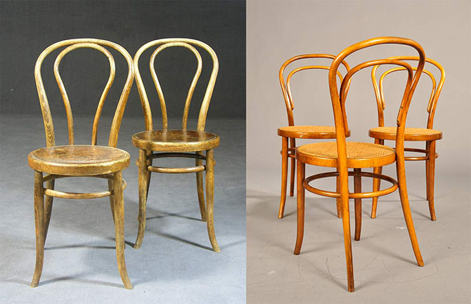 Thonet 的木条完全工艺主要一个特征是弯曲成的曲线是三维的,经过扭转的,这可以在 Thonet 的那些演示视频中可以看到(比如这个或这个),线条非常优雅流畅,即简洁像后来的现代主义,又有点想后来的新艺术运动等,Thonet 的其他一些椅子上这中曲线有更生动的表现。