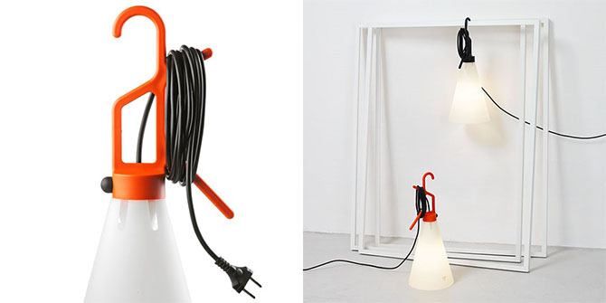 MayDay 可以使用在各种场景下,无论是放置还是挂起,可以适应很多不同的场景。而粗粗长长的电线无疑给这个产品带来了不少性格,工具的特征让它更容易从背景中独立出来,符合移动的属性,如果容易融入背景,那么它就成为一个位置固定的产品了。Konstantin Grcic 曾经考虑过更新这个设计,因为在目前来说,电线已经不需要了,可以更换成可充电的锂电池,而且 Konstantin 想把灯泡改成 LED 式的,但是 FLos 因为成本原因很快就否决了这个提议,他们要保证 MayDay 还是一款低价产品(售价是 149 美元,相对于 Flos 其他产品来说是低价)。MayDay 的这种“上一代技术”产品保留的现在与其设计相结合,倒更为相称。