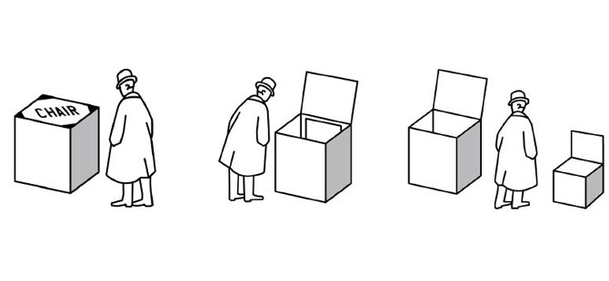 Konstantin Grcic 喜欢用一个漫画人物来表达他一些想法,或者日常的发现,通常是机智和风趣的,这位带帽子的老大爷在他网站的项目介绍中能看到很多,实际上他还有这个漫画作过他工作室的形象,他的漫画的形象(或者是某种自我画像)源自建筑史上比较著名的一幅漫画。