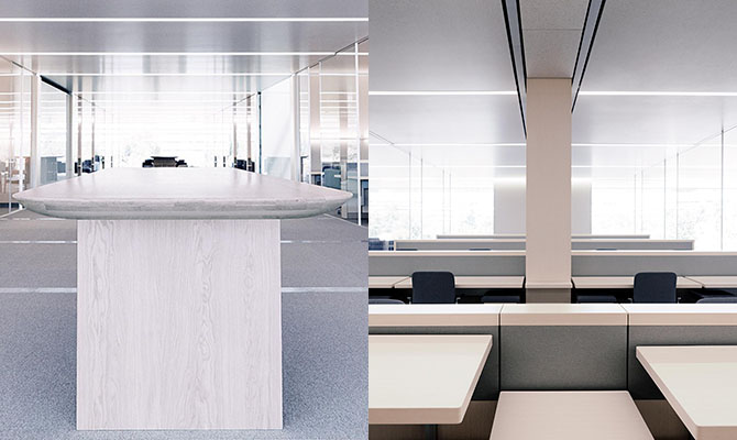 除了结构和品质上的需求外,不同的地方对木纹有不同的视觉需求,Steve Jobs 要求必须 Quarter-cut 是他是考虑 Apple Park 墙面的木纹,从 WSJ 报道 Apple Park 的内饰来看,墙面和桌子的木纹都是 Quarter-cut 的,而桌子下方是弦切的,有大花纹的,可以想象一下如果墙面也是大花纹的木板,将是怎样的氛围。