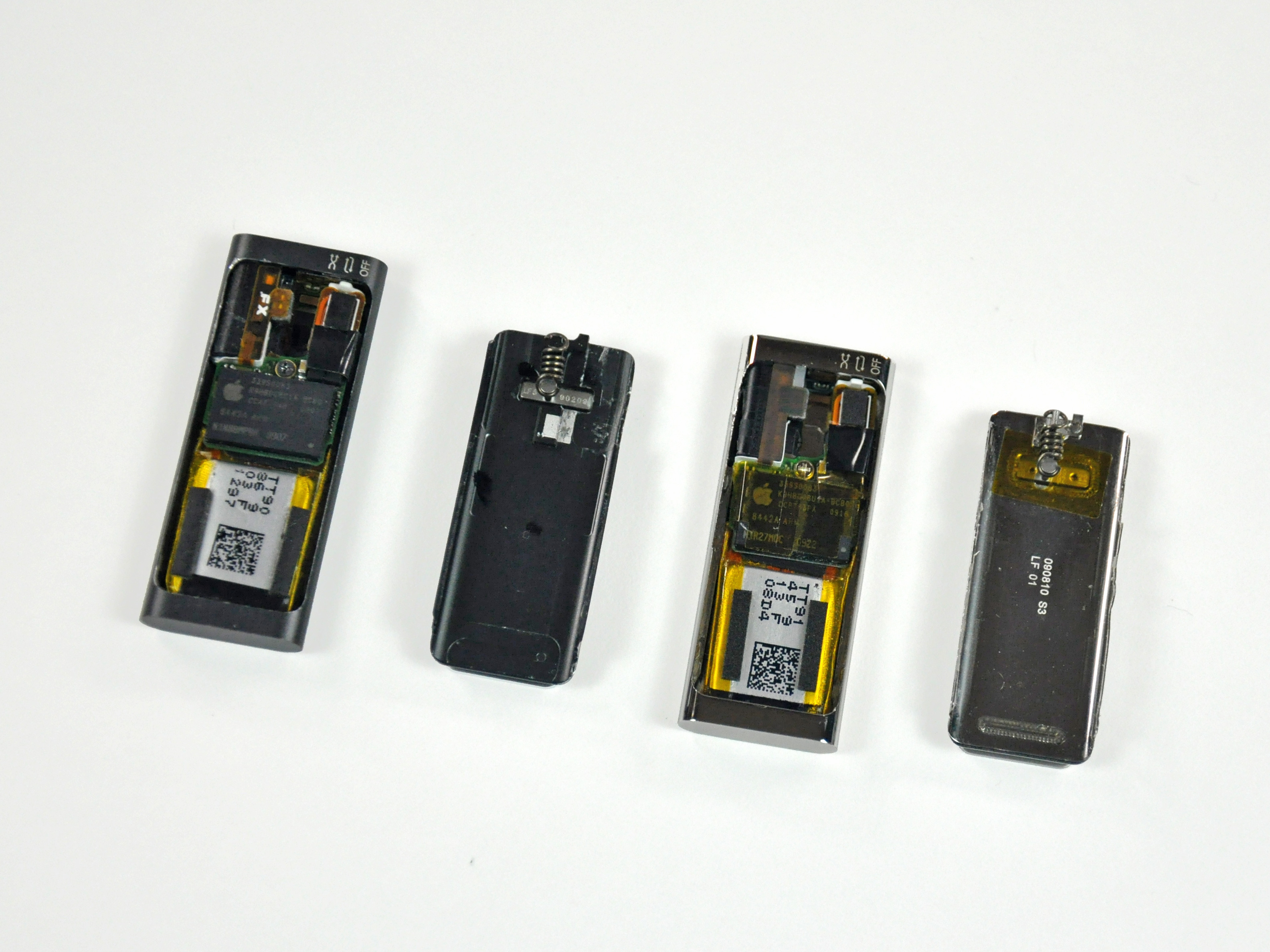 Apple 2009 年下半年推出的第三代 iPod Shuffle 特别版,高亮的不锈钢版本,同期的铝合金版本以及第二代的 iPod Shuffle 使用了 Unibody 工艺,但是当时 Unibody 工艺实行不久,在这么小的不锈钢件上实行不太现实,可以在 iFixit 上看相关的拆解,铝合金版能看到 CNC 的切割的痕迹,可以对比这张图,不锈钢版的后盖是光滑的,而且留有焊接的痕迹。不锈钢版的 iPod Shuffle 从整体上看和铝合金版的一样,表面没有接缝,而且开口小,看上去就是一整块的金属。它应该是用一个不锈钢直筒,然后焊接封口后打磨抛光,使其看上去就是完整的一体。