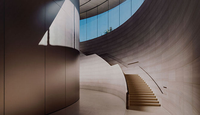 [ 2 ] Wallpaper* 杂志最近采访了 Jony Ive,谈论了 Apple 的新总部以及 iPhone 等,在《IN THE LOOP》这篇文章中还有不少 Apple 新总部的一些高清照片(此前介绍),展示了不少内部的细节。Foster + Partners 的合伙人以及 Apple 新总部主要建筑师之一 Stefan Behling 说到这不是 Foster + Partners 的建筑,而是他们同 Jony Ive 及其设计工作室合作的结果,每一件能看到的东西每一个细节都是两个团队在 9 年时间内共同设计的。文章展示了 Apple Park 里的楼梯(总共 32 部),用浇筑混泥土做成,但是打磨得跟石材一样,看上去就是整块无缝的石材一样,楼梯的墙壁上的木板打有成千上万的小孔,木板的背面是吸音材料,所以楼梯的空间是有消音效果的,当然这些木板是 Quarter-sawn(四分切)的。在这个访谈中,Jony Ive 说到:“当我回顾过往的 25 年,从某些方面来说,最珍贵的不是那些我们做出的东西,而是我们怎样做出的和作为结果我们学到了什么,我总认为一项工作结束会有两个成果,一个是实物产品或者服务,你想方设法要做出的东西,然后就是所有你学到的,那些你学到的东西具有让你做下一个东西及做得更好的能量。”