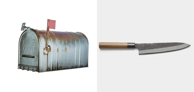 [ 2 ] Lenovo 的前设计副总裁、CDO 以及 ThinkPad 的设计主管 David Hill 的 Twitter 是我最喜欢的一个账号,他每天推送一个设计推荐,叫作 #designoftheday,经常可以看到很多有意思的设计,是那些专注当下和流行的设计类账号中无法获取的。比如上图左的 Roy Joroleman 1915 年设计的信箱,“你有信”就用一面小旗子来提示,简直与现在的 Email 的提醒设计一样先进。上图右是日本厨师刀,三层金属,夹在不锈钢里是一层高硬度的高碳钢,不锈钢表面未磨制部分是粗糙处理,玉兰木手柄作过烧焦防湿处理,手柄前端还有一段复合合成木头,为了提供更好的卫生性能,而从图片上看这两段看上去就像无缝衔接一样。