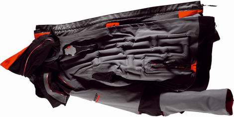 可以自由的调节温度,而使用的材料为空气,在马甲上有迷宫形状的空气囊单元,当你需要增加温度的时候,只要从领口处的小管向里面吹气就行,当然热了,放气即可,这样你可以穿一件轻薄的衣服可以适合各种环境,温度可调整的范围很广,同时它也是透气的(气囊室是密封的),所以你不会感到不舒适。对于登山爱好者来说,是一件很适合的外套。来自GORE-TEX。(via:Yanko design)