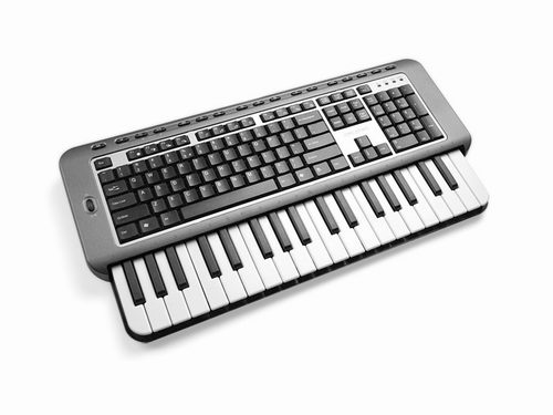 来自Creative的Prodikeys PC-MIDI,很多人在听到熟悉或者能激发情绪的曲子时,十指就会下意识的在键盘上飞舞,尽管实际上不懂得任何弹奏技术,在商场的乐器柜台不时地可以看到大人小孩都情不自禁的去触摸并使其发声,就好像每个人都喜欢的涂鸦。这个软件支持的键盘有可定制的快捷键,以及一些常规的音乐播放控制相关的按键,37个音乐键,当这37个音乐键不使用时,加上一个盖子就成了键盘的托手垫。(via:Engadget)
