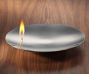 看到图,你也许会怀疑它的真实性,因为这个灯火看上去不可能燃烧,但事实是燃料——油,被放在不锈钢凹面的下面(有一点像魔术,一个凹面自然引导你的直觉–和它的功能相联系) ,这样将不锈钢和火以一种看似不可思议的表现方式呈现出来。试想,不锈钢里面是油,油渗到灯芯,灯芯燃烧成烟(也许肉眼看不见),似乎有一种金木水火土的哲学意味。Concave Oil Lamp由 Franz Maurer设计。(via:Better Living Through Design)