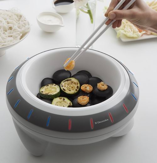 下面是另外一个比较有意思的入围作品,hwa-seok;利用电磁波加热的flaming stone(火石)来烧制食物,唯一的遗憾就是外形太现代了,不够未来或复古。