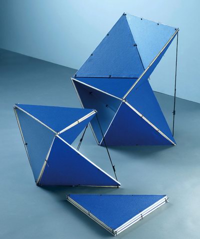这是Simon Kolff设计的’Modular Furnishing Element’,三角形的桦木板形状,可以让你自由组合成至少15种不同样式的椅子。