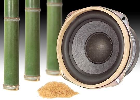 竹子由于其快速成长性,广泛用于设计设计的替代材料。这是日本Doshisha和Panasonic合作的项目,用竹纤维来作HiFi扬声器的震动板,它同样可以保证提供高质量的音效,当然最明显的还是制造成本的变化,Panasonic预计将在2007推出这个产品。(via:akihabra)