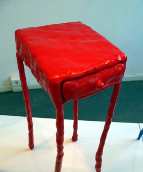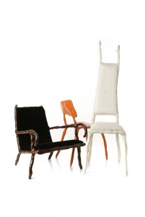 Maarten Baas的焚烧系列我们前面见识过了,上图展出的是他的粘土系列。在金属框架的家具上裹上粘土,然后再作表面处理。