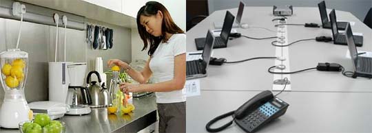 EUBiQ插座系统分为The Eubiq Wall Socket(上图左上,有LED显示灯),Plug插头(上图中),Adaptors变压器(上图右) 以及Powertrack延长插座槽(上图下)。Eubiq Wall Socket是一个设计安全的电源插座,电源的触脚并不是正对着插口,而是隐藏在插座的上下边,当插头(或其他)插入,旋转90度电源才接通,而Powertrack是将Eubiq Wall Socket延长成为一条插座槽,可以容纳16个Eubiq插头或12个Eubiq变压器,而且具有扩展性,以及可以在里面增加网线。