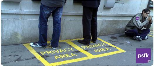 这是在伦敦的取款机前标识出的一块ATM Privacy Area(ATM隐私地带)-via:PSFK,在公共领域,明示和暗示所产生的秩序也许就是完全两样,所以我们有各种指示灯,篱笆墙,标语等等。有时候会觉得这些规矩是一种阻碍(无论对个人还是社会),有人就试图作一些突破,比如没用交通信号的人生;而有时又觉得道德和自律并不起多大的作用,比如小学毕业就忘了怎么把对排成直线等等。对于个人生活也如此,比如看这个: