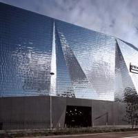 FOA 的一个较新建筑,位于 Leicester(莱斯特)的 John Lewis 分店以及同一大楼内的电影院,上图就是电影院的一面,一个封闭的外壳,表皮使用的是起皱的不锈钢贴面,如同剧场的幕布,同时丰富的光线反射让其熠熠生辉。相邻的 John Lewis 店这是轻盈透明,多层的蕾丝花边让其看起来如同网格窗帘。