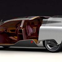 看到这张图,似乎有一种 Long Time No See 的感觉,即出自女性设计师之手的感觉,在汽车设计比较明显一点。因为女性设计师相对较少,所以类似 Volvo YCC 概念车这样的设计就给人留下非常深的印象。没猜错,这辆 Nissan Joy 来自 Kimberly Wu(华人,网站可能需要代理,可以通过她的链接查看其他 ACCD 学生包括很多华人的作品),这是她 ACCD 毕业设计作品中的一个,下面有她的一张手绘效果图。