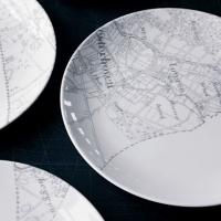 一个印有地图的盘子,使用地图作为设计元素的我们见过很多,比如我们前面介绍的扇子上的地图,用曼哈顿中心地图做成的苍蝇排,以及使用等高线的Topoware。 这个由Maaike Bertens设计的View of Bergeijk,也是使用了Bergeijk的地图,但这些系列地图是从1927年的老地图开始的,印在33个盘子上(以及配套的餐巾),使用者是年长者,激起他们的回忆。